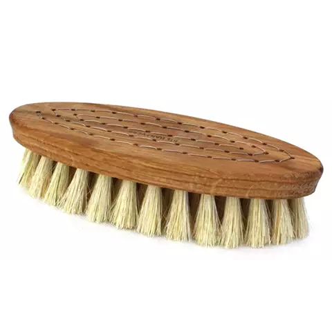 Bastu- badborste oval av oljad ek. Borst av tagel. Borsten masserar din hud och samtidigt som den stimulerar din blodcirkulation!