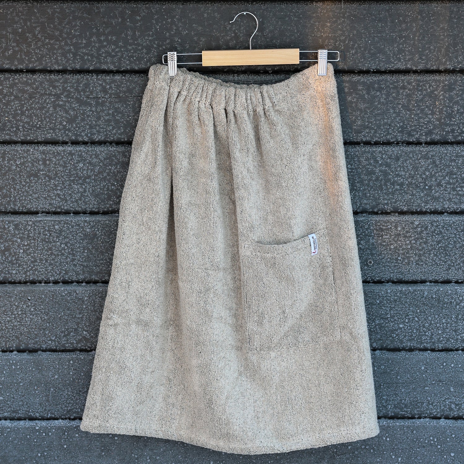En mjuk och bekväm bastukilt i naturfärgad frotté som ger skön komfort efter bastu och bad. Den sitter stadigt runt kroppen och torkar snabbt, perfekt för dig som vill koppla av i en lätt och luftig modell.