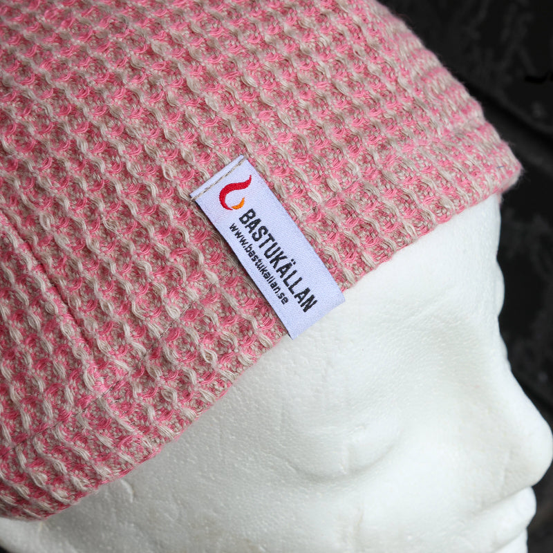 Ge bastustunden en mjuk och harmonisk känsla med vår bastumössa i mild rosa linfrotté. Den är skön att bära, skyddar mot värme och tillför en varm, rofylld ton till din bastuupplevelse.