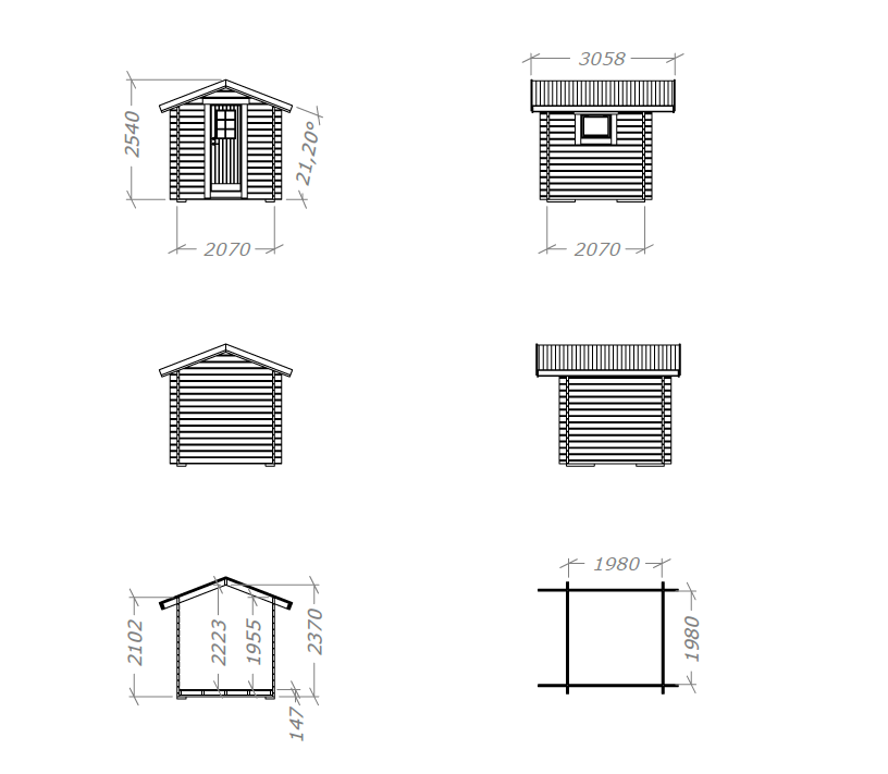 Vikt: Stugan levereras som byggsats och kommer normalt i 2st virkespaket samt 1st ytterdörr i kartong, fönster som ingår packas normalt in i virkespaketen. Vikt totalt ca: 680kg (per kolli: 430kg / 220kg / 30kg)
