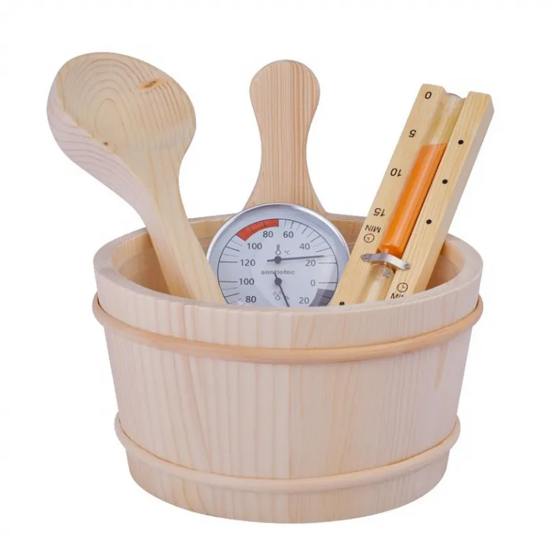Tillverkat i naturliga material som smälter in i bastuns varma miljö och tål de höga temperaturerna, är detta set ett självklart val för både nybörjare och erfarna bastuälskare.